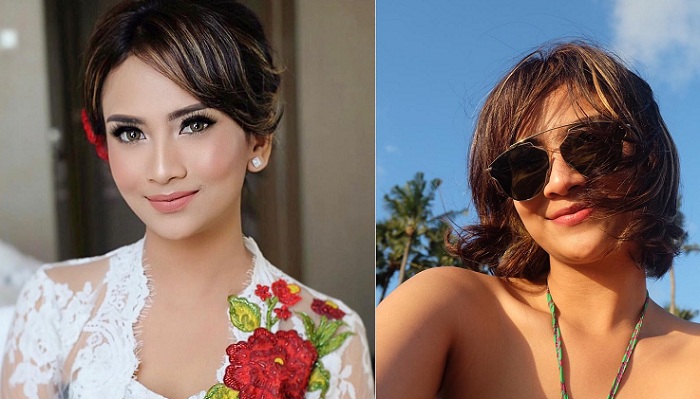 Vannesa Angel juga terlihat menggunakan dalaman seperti kemben berwarna hitam.