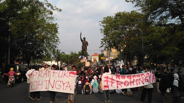 Aksi mahasiswa peduli Rohingya di Gladak, Solo, Jumat (8/9/2017) sore.