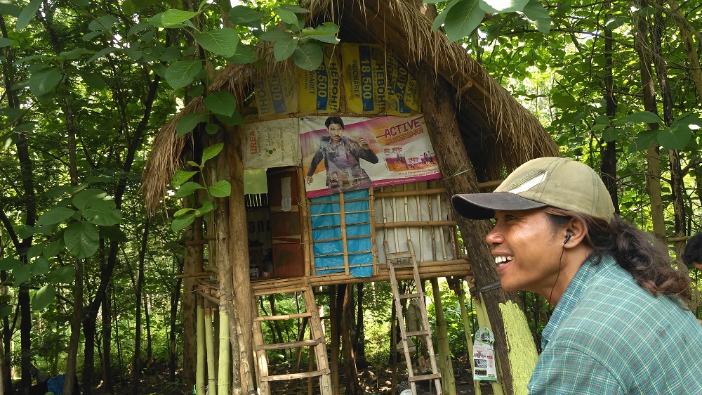 Ibu Resmi dan Redi itu bercerita awal mula menempati rumah pohon yang dikelilingi pepohanan jati.
