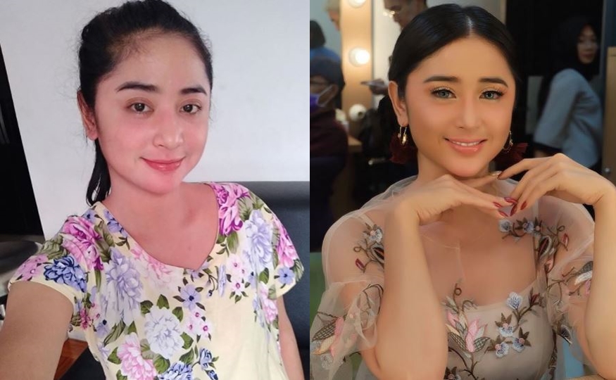 Wanita bernama asli Dewi Murya Agung, alias Dewi Perssik ini memang sudah dikenal berwajah cantik, baik dengan atau tanpa make up.
