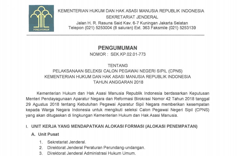 Kemenkumham Buka 878 Formasi CPNS 2018 untuk Lulusan SMA, Ini Syarat dan Pengumumannya