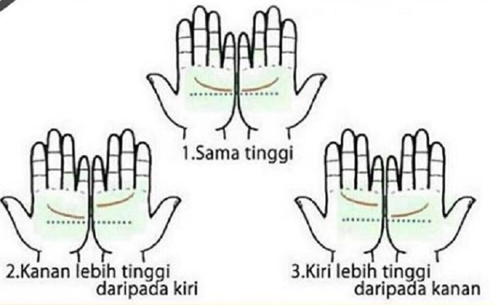 Jika garis tangan kamu mempunyai tinggi yang sama atau sejajar seperti gambar di atas, itu artinya kamu memiliki sisi lemah lembut.