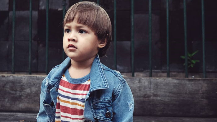 Anak Ringgo Agus Rahman dan Sabai Dieter, Bjorka, tampil mengenakan jaket jeans bak pemain Dilan.
