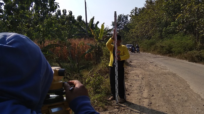 Mereka sedang bekerja untuk mengukur dan mengecek kondisi jalanan di jalan penghubung kecamatan Kemusu, Wonosegoro dan Juwangi.