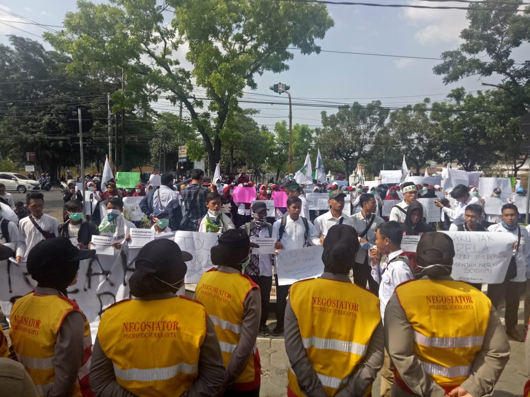 Dari pantauan TribunSolo.com, massa yang terlihat yakni dari Kesatuan Aksi Mahasiswa Muslim Indonesia (KAMMI), Aliansi Garda Pembela Pancasila dan mahasiswa dari sejumlah universitas se-Solo Raya.