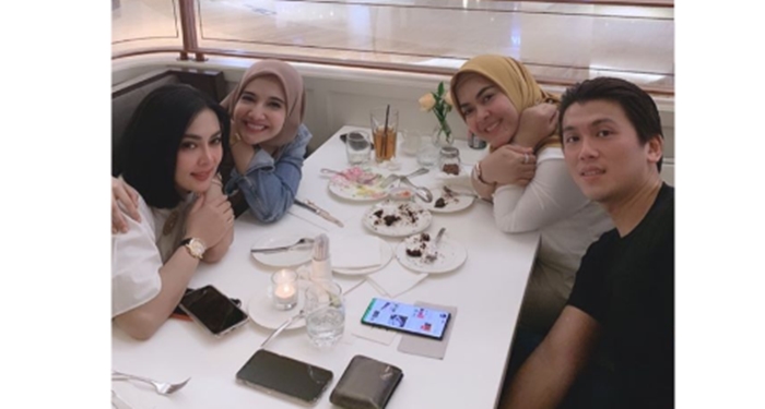 Syahrini yang mengajak suami dan sang adik, Aisyharani, tampak akrab bersama dengan Zaskia Sungkar.