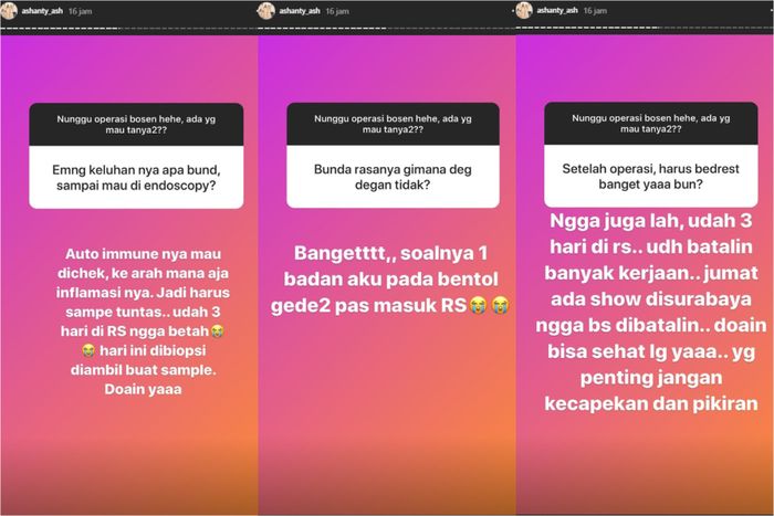 Menilik dari Instastory-nya, Ashanty ternyata sedang menjalani perawatan penyakit autoimunnya itu.