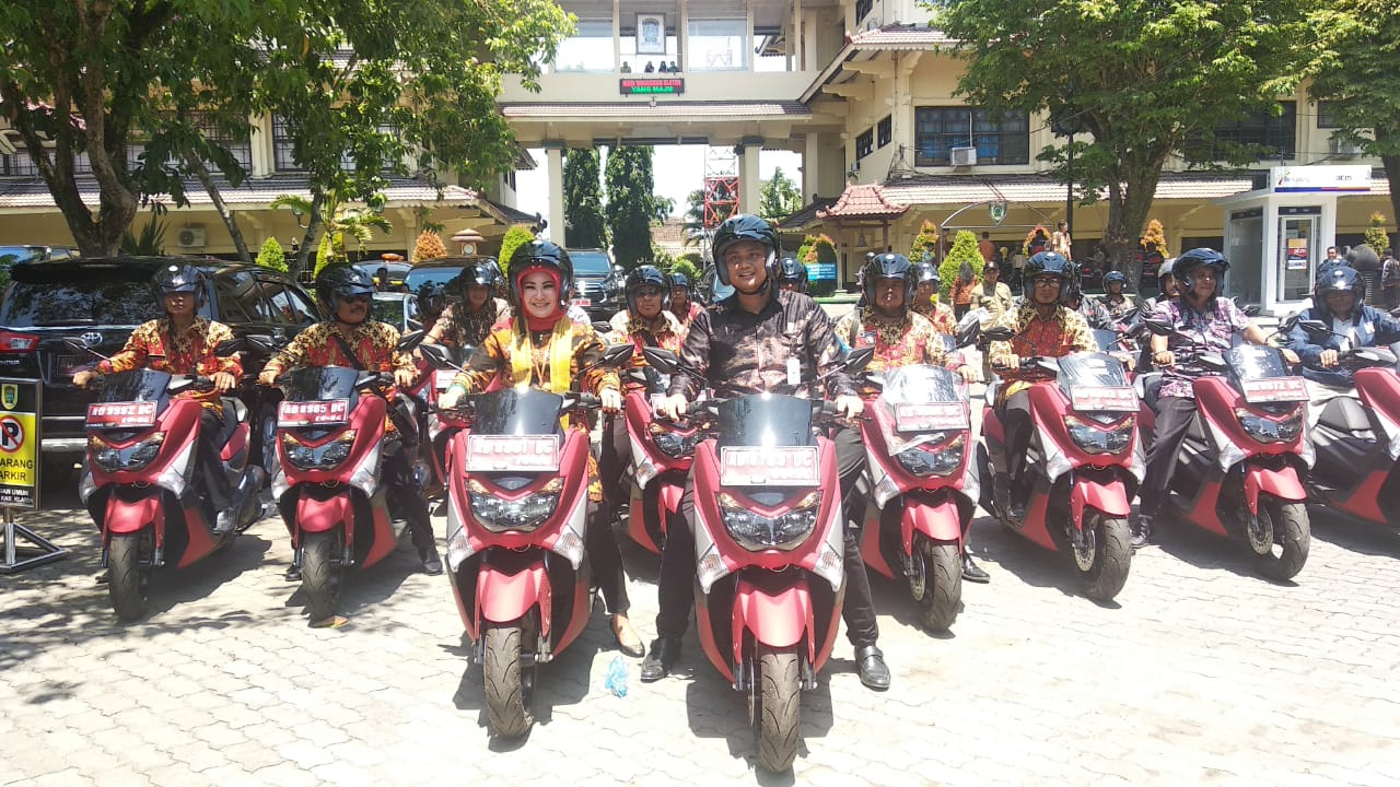 Ratusan kades dan lurah langsung membawa pulang motor tersebut usai upacara penyerahan.
