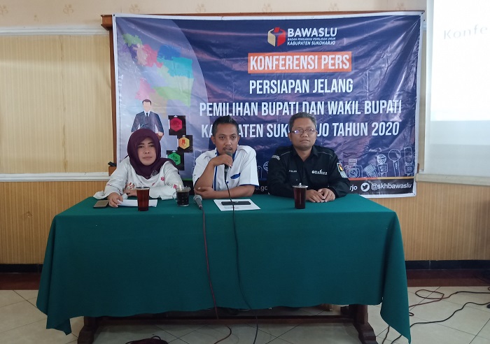 Hal itu diungkap Komisioner Bawaslu Sukoharjo Divisi Organisasi dan Sumber Daya Manusia (SDM), Uswatun Mufidah, saat konfrensi pers di Rumah Makan Embun Pagi, Rabu (18/12/2019).