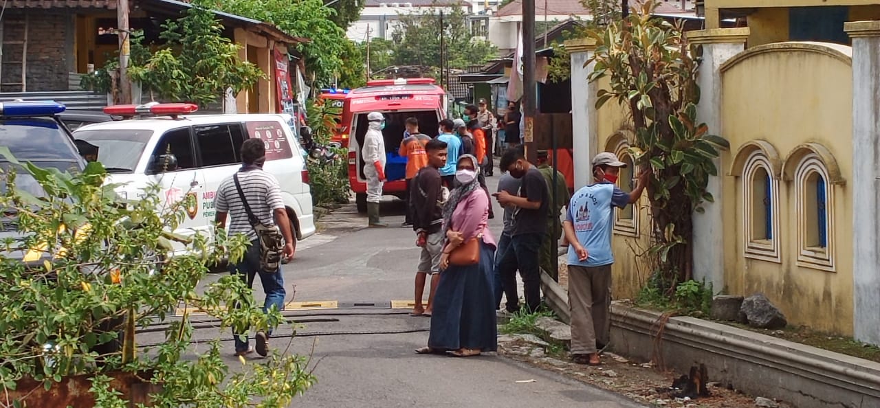 Petugas medis dan polisi yang datang ke lokasi menggunakan protokol kesehatan, yaitu APD lengkap untuk menjemput jenazah.