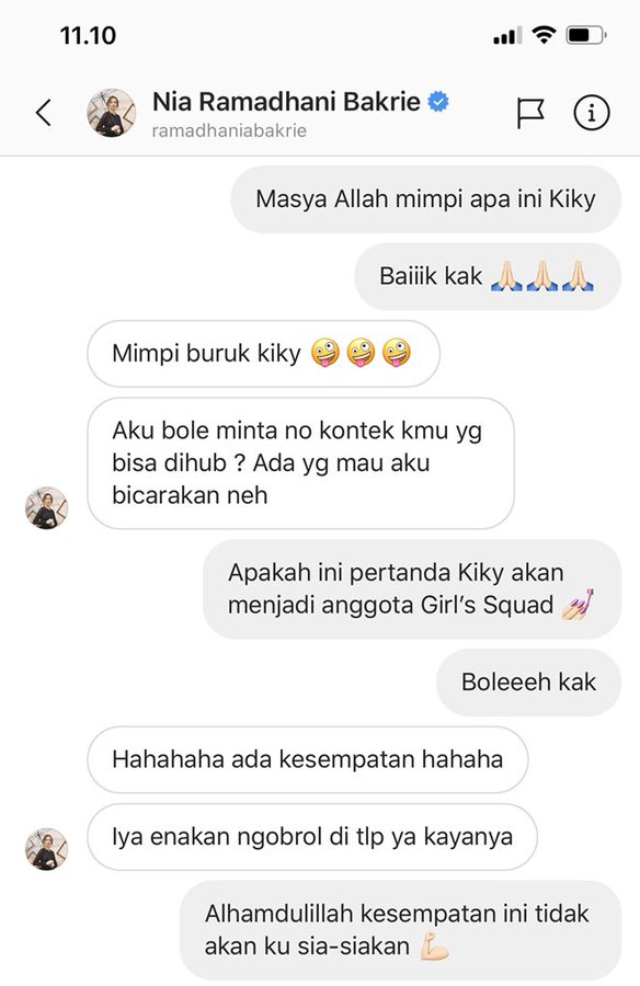 Melainkan cara Nia menghubungi Kiky melalui DM Instagram-lah yang jadi sorotan.