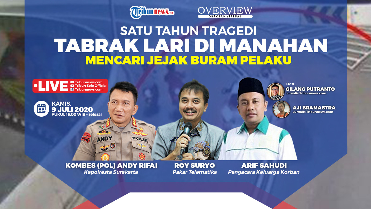 "Saya pada kesempatan minta pendapat Pak Roy, dengan kondisi seperti ini, menuju golnya itu masih lama atau tinggal sedikit?," ungkapnya saat acara Overview Obrolan Virtual bertema Satu Tahun Tragedi Tabrak Lari Tabrak Lari di Manahan Mencari Jejak Buram Pelaku yang digelar Tribunnews.com, Kamis (9/7/2020).