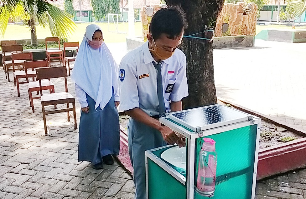 "Para siswa di SMAN 1 Polanharjo membuat inovasi langkah mecegah peserbaran Covid-19 dengan membuat wastafel tenaga surya dengan sensor," kata Jaka kepada TribunSolo.com.
