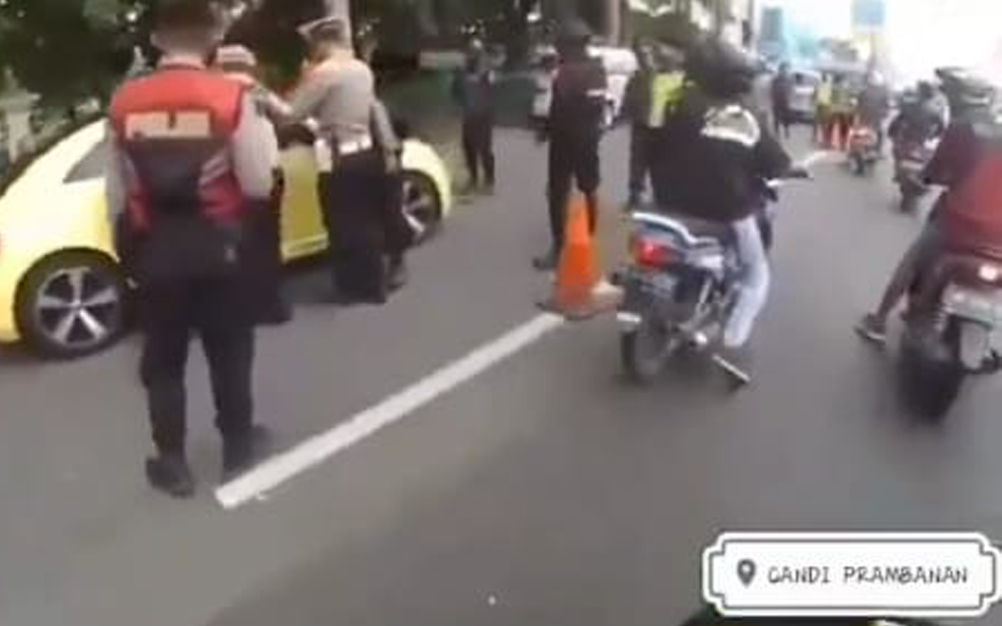Tangkapan layar pemeriksaan pengemudi mobil VW kuning di pos penyekatan Prambanan, Jalan Jogja - Solo, Kabupaten Klaten.