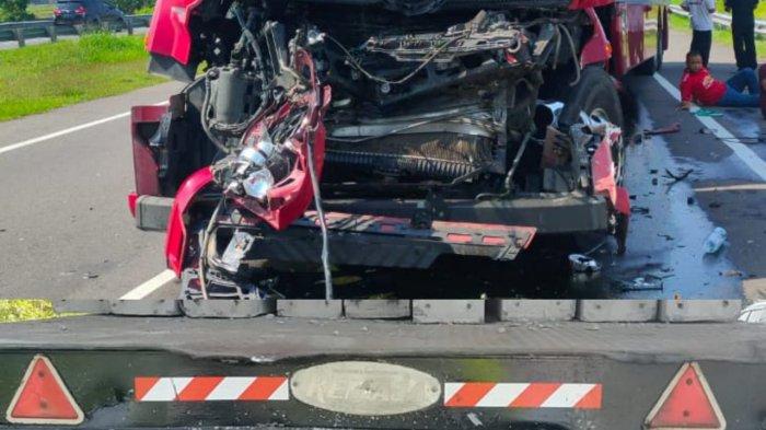 Insiden kecelakaan antara dua truk trailer terjadi di jalan tol KM 502 Jalur B Solo - Semarang, Kabupaten Boyolali, Minggu (30/5/2021).