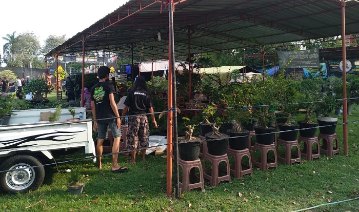 Dari pantauan di lokasi, saat ini sudah dipasang pembatas dari jaring paranet. Sedangkan para peserta terlihat menata bonsai koleksinya.