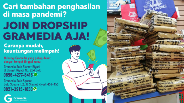 Menangkap fenomena ini, Gramedia Solo membuka kesempatan warga Kota Solo dan sekitarnya untuk bisa menambah penghasilan melalui sistem dropship.