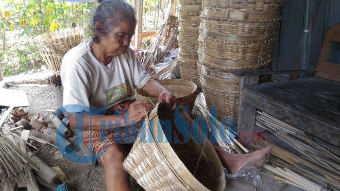 Nenek Umi (70) warga Dukuh Sembung, Desa Canden Kecamatan Sambi, Boyolali masih eksis menggeluti anyaman bambu yang dijadikan perkakas tradisional.