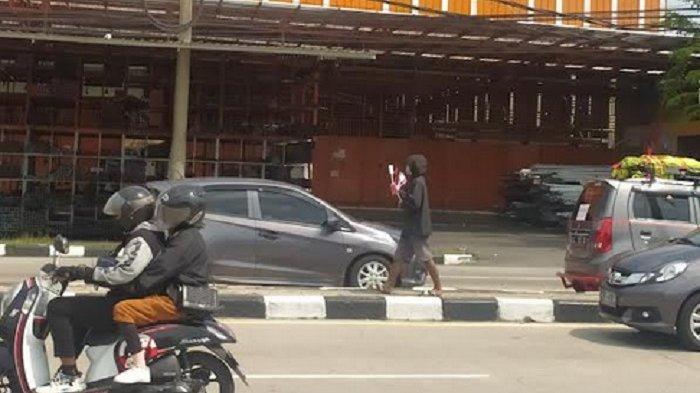 Ayah 2 anak itu menawarkan tongkat e-tol di Exit Tol Ngasem Colomadu Kabupaten Karanganyar. Dari pantauan di lokasi, Hakim yang mengenakan jaket hitam terlihat menawarkan tongkat tersebut dari satu mobil ke mobil lainnya yang berhenti di traffic light Exit Tol Ngasem.