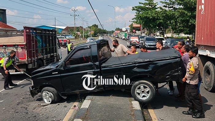 Informasi yang dihimpun TribunSolo.com, sekira pukul 13.15 WIB, Totok Supriyadi (43) warga Kampung Gumulan, Kelurahan Kemiri, Mojosongo mengendarai kendaraan Isuzu pikap dari arah timur (Solo).