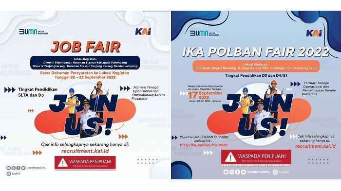 PT Kereta Api Indonesia (Persero) akan membuka rekrutmen melalui Jobfair 2022 yang dilaksanakan di 3 tempat.