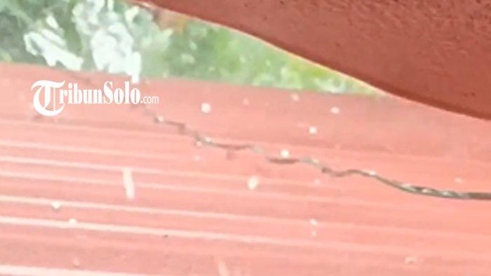 TRIBUNSOLO.COM, KLATEN - Hujan es terjadi di Desa Palar, Trucuk, Kabupaten Klaten, Jumat (17/3/2023).