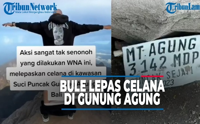 TRIBUNSOLO.COM - Sebuah foto yang memperlihatkan seorang turis atau warga negara asing (WNA) melepas celananya saat menghadap kawah Gunung Agung, Bali, viral di media sosial.