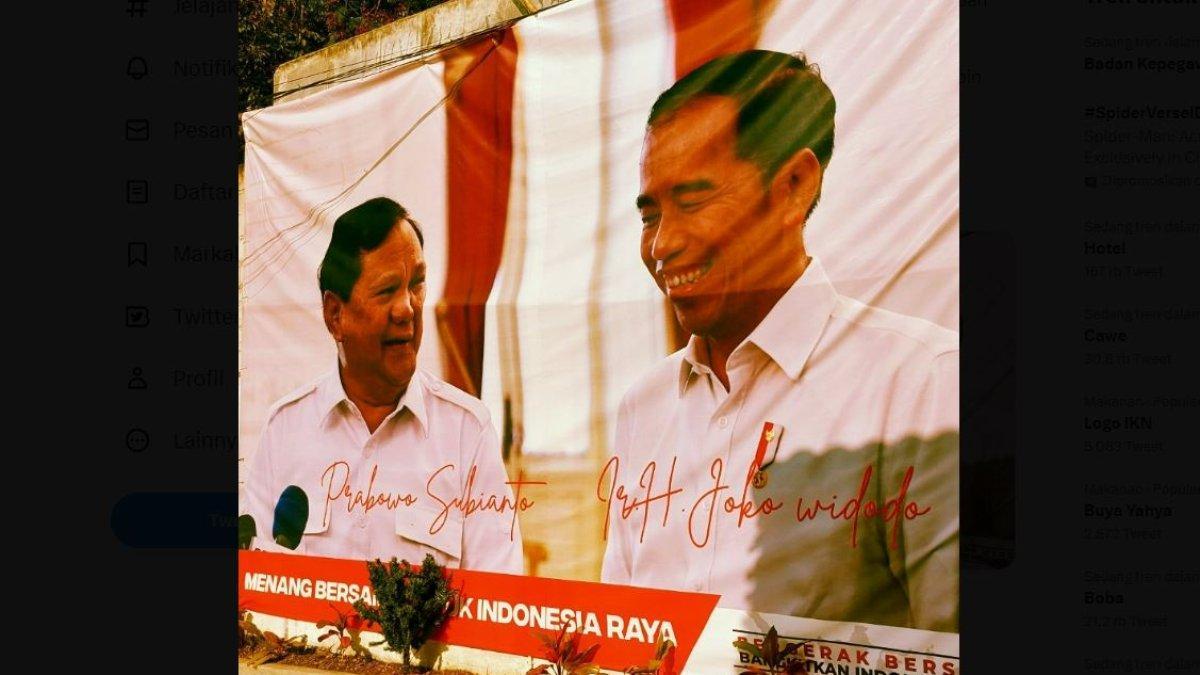 Baliho ini memuat dua foto momen kebersaman Prabowo dan Jokowi.