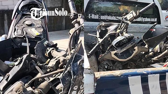 Kecelakaan karambol terjadi di Boyolali. Hal ini mengakibatkan sebuah sepeda motor mengalami ringsek parah karena tergencet.