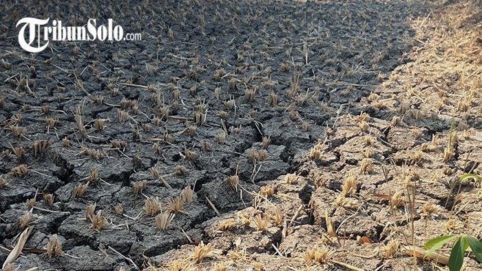 Dari pantauan TribunSolo.com, sawah-sawah yang ada di Desa Krendowahono kering.