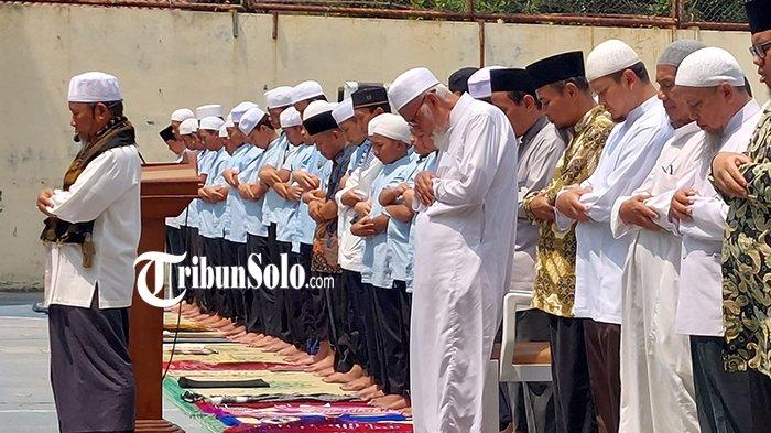 TRIBUNSOLO.COM, SUKOHARJO - Pondok Pesantren (Ponpes) Islam Al-Mukmin, yang terletak di Ngruki, Kecamatan Grogol, Kabupaten Sukoharjo, menggelar salat istisqa, Kamis (12/10/2023).