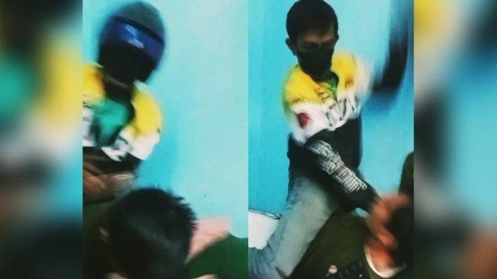Potongan tangkap layar video driver ojol sedang melakukan penganiayaan terhadap pemuda di dalam sebuah kamar di kawasan Kompleks Bumi Permata Hijau (BTP), Kecamatan Tamalanrea, Kota Makassar, Sulawesi Selatan (Sulsel), pada Selasa (24/10/2023) siang.
