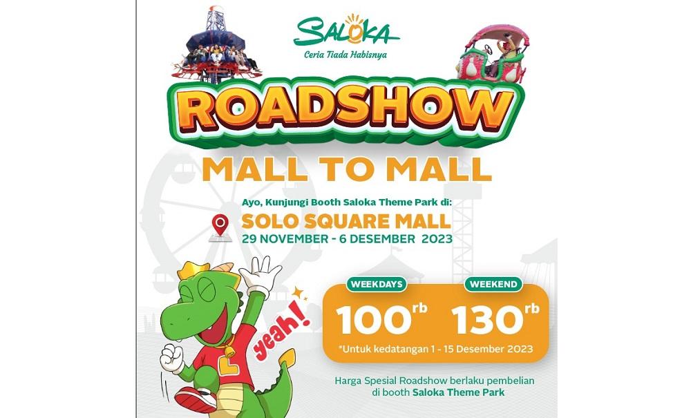 "Jelang high season kita akan mengadakan Roadshow terakhir di tahun 2023, Kota Solo akan yang akan jadi tujuannya. Saloka akan hadir di Mall Solo Square di tanggal 29 November sampai 6 Desember 2023 dengan harga spesial mulai dari 100 ribu saja," kata Brand and Promotion Partnership Saloka Theme Park, Satria Ramadhani.