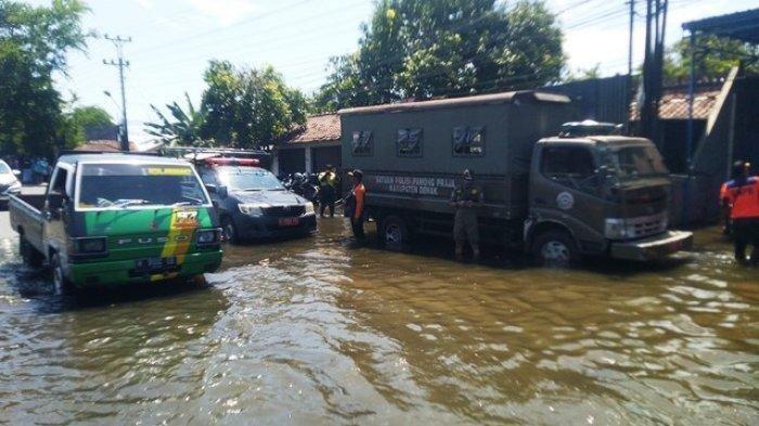 Jebolnya tanggul Sungai Wulan sebabkan akses Jalur Pantura di perbatasan Kabupaten Demak-Kudus lumpuh. Kemacetan panjang pun terjadi.