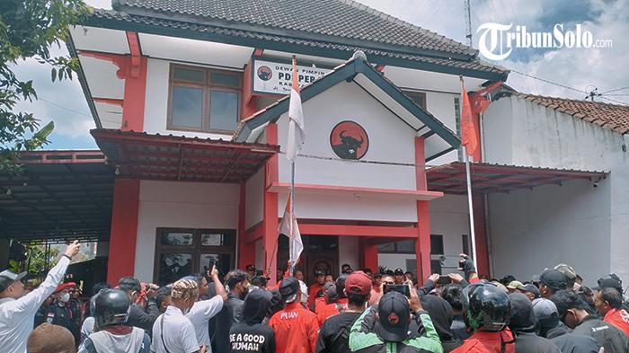 Ratusan simpatisan dan kader PAC PDIP Weru Sukoharjo menggeruduk kantor DPC PDIP Sukoharjo, Senin (18/3/2024).