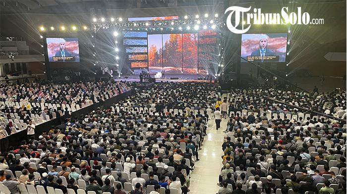 Pantauan TribunSolo.com, untuk mengantisipasi lonjakan pengunjung, panitia juga menyiapkan layar lebar di luar gedung agar jamaah yang tak tertampung tetap bisa mengikuti jalannya acara.