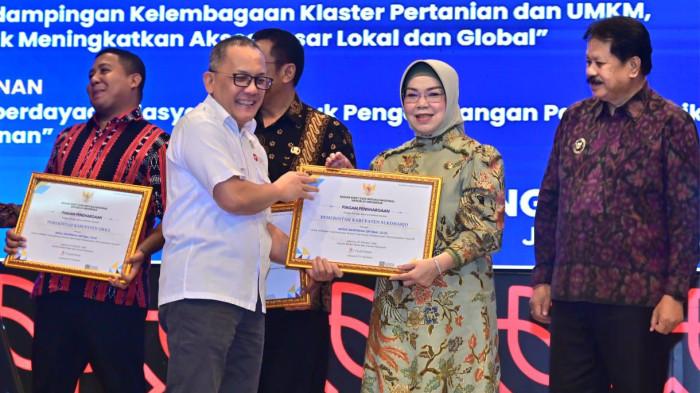 Penghargaan diserahkan langsung oleh Kepala BRIN, Laksana Tri Handoko, kepada Bupati Sukoharjo, Etik Suryani.