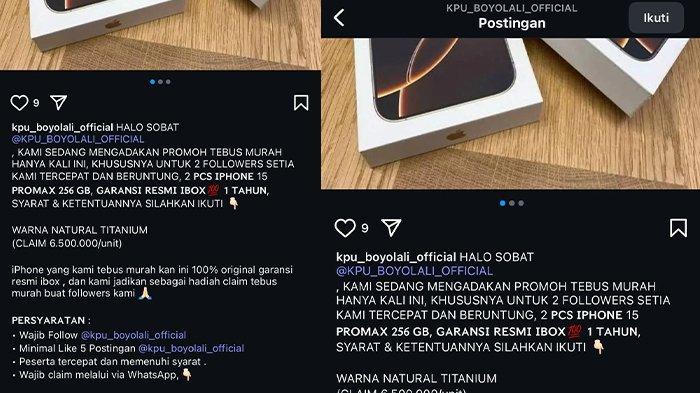 Instagram KPU Boyolali Diretas Sejak 17 April 2025, Berikan Tawaran Tebus Murah iPhone