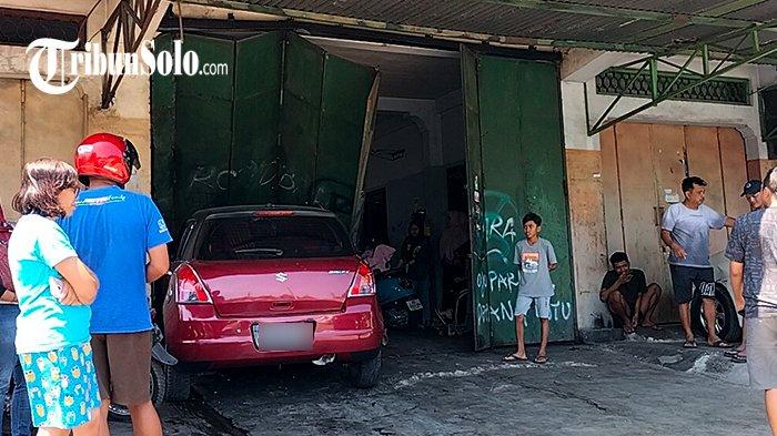 mobil Suzuki Swift merah menabrak sebuah bengkel yang berada di depan RSUD Pandan Arang Boyolali, Kalongan, Kelurahan Pulisen, Kecamatan Boyolali.